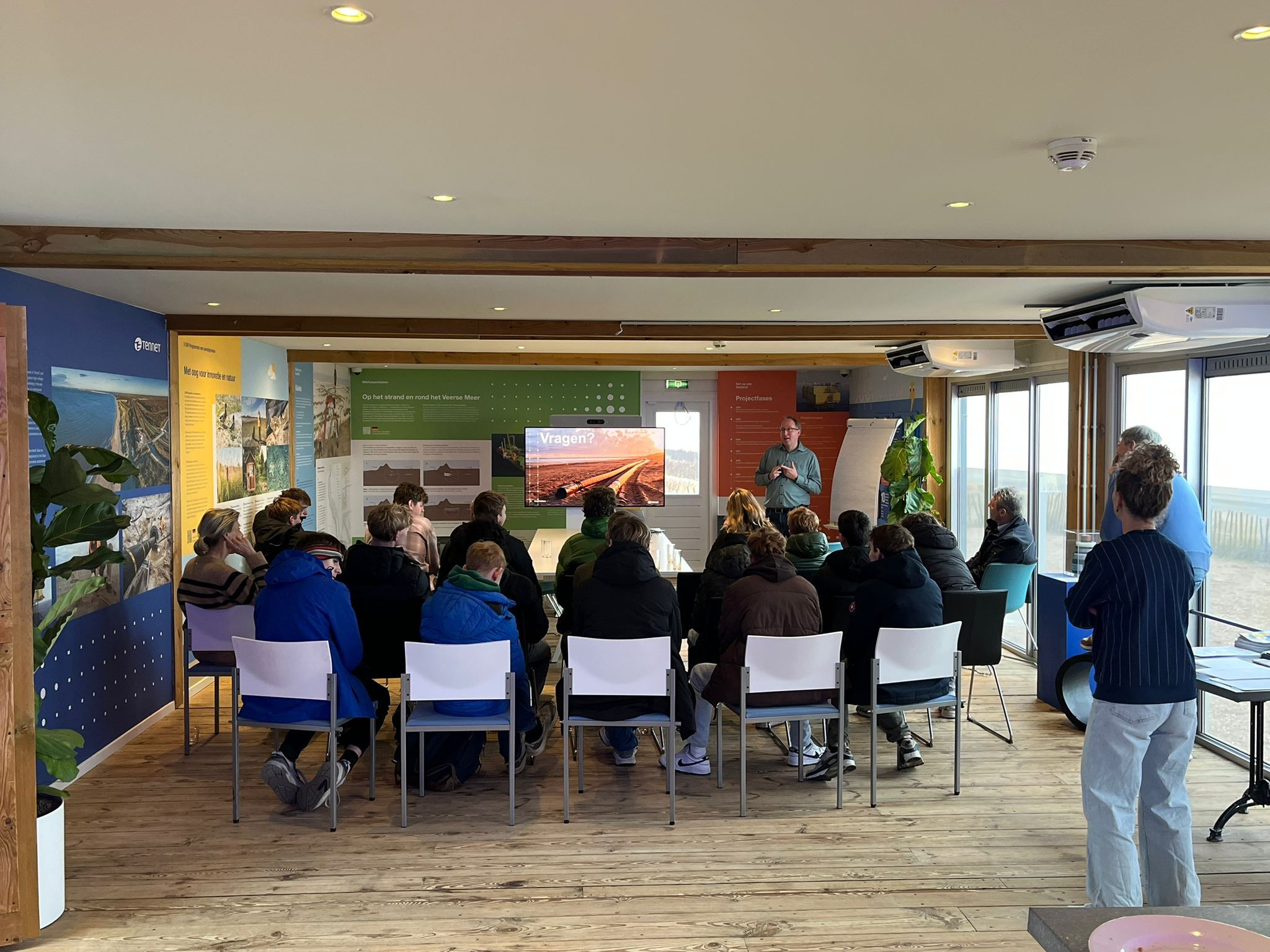 Net op zee Zeeland ontving een groep van 25 eerstejaars studenten Werktuigbouwkunde en Elektrotechniek van Scalda in het Infopunt Net op zee Zeeland. Tijdens het bezoek maakten de studenten kennis met de praktijk van offshore energieprojecten en kregen zij een goed beeld van de rol die techniek speelt in de energietransitie.
